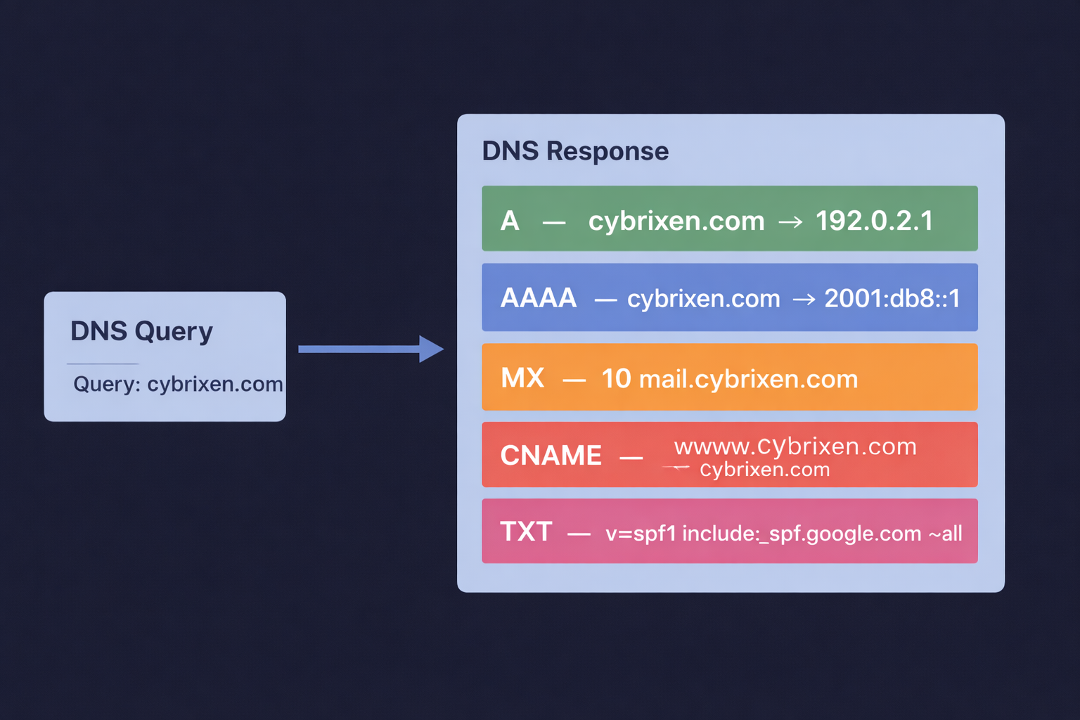 DNS is what translates easy-to-remember domain names (like cybrixen.com) into computer-friendly IP addresses (like 192.168.1.1). Without DNS, you would need to memorize strings of numbers for every website you visit. In this room, you will learn how this critical system works behind the scenes.