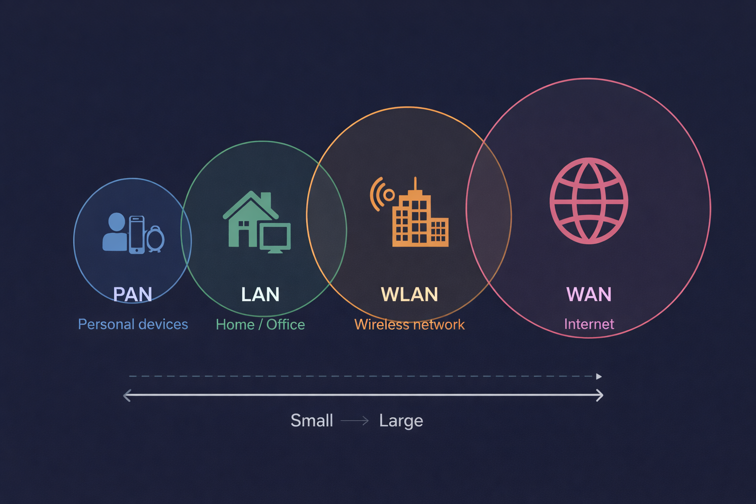 - Identify different types of networks and their purposes